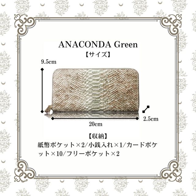 【金運UPの緑色】イタリアAtema社製「Align」のパイソン型押し長財布!牛革に宿るAnaconda Diamantinaの光沢が上品!大人の女性を輝かせるエレガントなデザインで、ギフトにも最適なラグジュアリーウォレット!