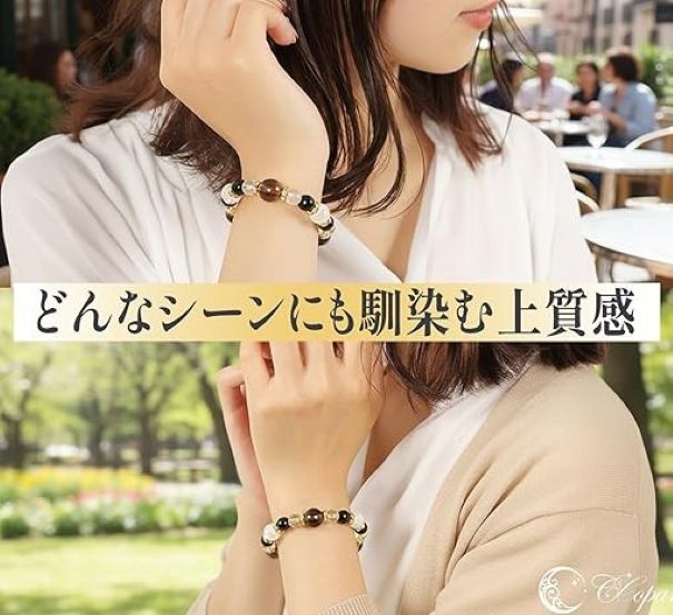 私がこのブレスレットに触れて最も感動したのは、その「天然石が語りかけるような、温かい存在感」です。手首に身につけるたび、石たちが持つ太古からの神秘的なエネルギーを感じ、心が落ち着くのを感じます。デザインも、男女問わず身につけやすい洗練されたものであり、日常のどんなシーンでも「お守り」としてだけでなく、「自分らしい意志を表現するアイテム」としても機能します。特に、人間関係を円滑にする効果を持つとされる石の組み合わせは、「人との繋がりに恵まれたい」と願う現代人の心に深く響きます。
