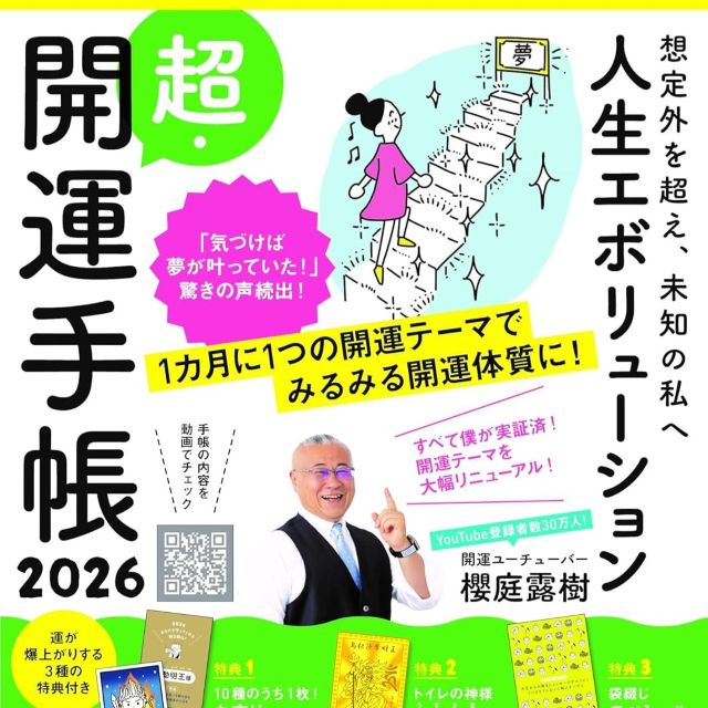想定外を超え未知の私へ。人生エボリューション超・開運手帳2026がAmazon限定で登場。2026年の運気を引き寄せる最強のパートナー。限定特典の明王様カードスマホ壁紙で守護を受け、自己変革と開運を叶える。