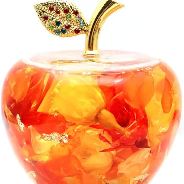 実際に手にしてみると、その滑らかな曲線の美しさに驚かされます。林檎のヘタの部分にいたるまで丁寧に作り込まれており、細部へのこだわりが高級感を演出しています。専用の箱も付属しているため、届いたその時から特別な宝物のような佇まいを感じられるはずです。大切な友人へ、あるいは毎日頑張っている自分自身へのご褒美として、この光輝く林檎はきっと、日常に小さな奇跡を運んできてくれるに違いありません。