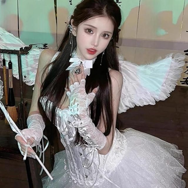 このセットの魅力は、届いた瞬間に完成された世界観を演出できる点にあります。衣装本体に加えて、象徴的な羽根、そしてキャラクターを際立たせる小物が揃っているため、初心者の方でも迷うことなく理想の姿に変身できます。特に注目すべきは、背中に背負う羽根の存在感です。歩くたびに揺れる羽根は、周囲の視線を釘付けにし、写真映えも抜群です。大人っぽさの中に散りばめられた「可愛らしさ」の絶妙なバランスが、着用する人の魅力を最大限に引き出します。