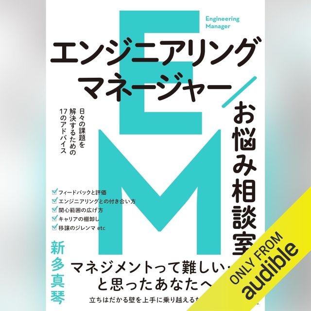 エンジニアリングマネージャーお悩み相談室Audible完全版。日々の課題を解決する17のアドバイスが組織運営の苦悩を解消。リーダーシップとチームビルディングの本質を耳で学ぶ。現役EM必聴の勇気と智慧を授ける一冊。