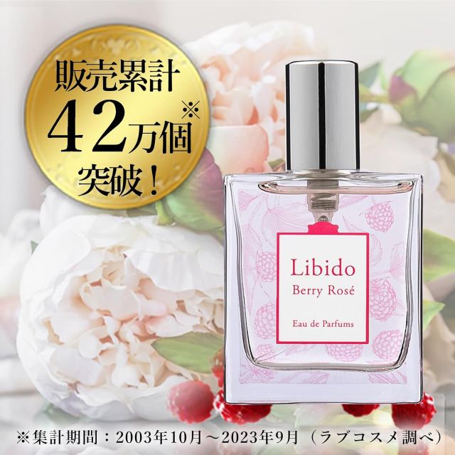 【恋を呼び込む魔法】 ラブコスメのリビドー ベリーロゼ! 甘くて切ないベリーとローズ、イランイランが誘うパフューム。オスモフェリン配合で本能に訴えかけ、石鹸のような清潔感でギャップを演出するモテ香水! 特別な夜と日常を彩るフェロモンコロン。