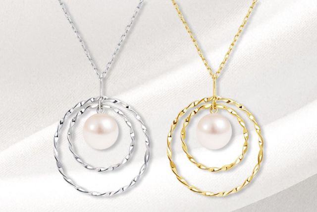デザインの核となるのは、真珠を優しく包み込むような「ダブルサークル」モチーフ。古典的になりがちな一粒パールを、二重のリングがモダンで洗練された印象へと昇華させています。このサークルモチーフは「永遠」や「絆」を意味し、デザインに奥深いメッセージ性を与えています。