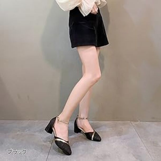 - 安定感: 太くしっかりとしたヒールは、接地面が広く、グラつきにくいのが特徴です。ハイヒールの不安定さが苦手な方でも、まるで地面に吸い付くような安心感のある歩行をサポートしてくれます。