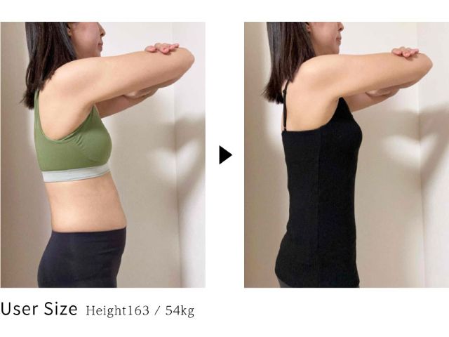 「これを着てアウターを着ると、普段よりワンサイズ細く見えると褒められました!強力に締め付けるわけではないのに、体のラインが自然と整う感じがすごいです。特に姿勢が良くなるのを実感できて、背筋が伸びるようになりました。」