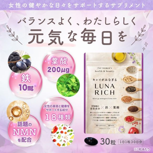 【内側から輝く】女性のゆらぎと徹底決別!鉄・葉酸・NMNなど10種の贅沢美容成分が導く、心と体のリズムサポート。自信と美しさに満ちた、ストレスフリーな毎日を取り戻す秘密の鍵。