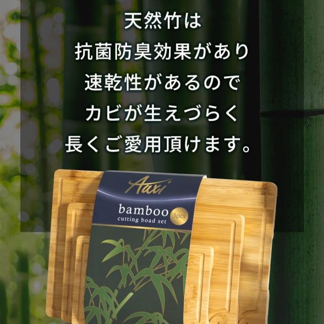 健康と安心を食卓に:管理栄養士監修のAuxi竹製まな板がキッチンの常識を変える。天然竹100%の抗菌・防カビ仕様で衛生面も完璧。大小3点セットで料理の効率と質を高める究極のパートナー。