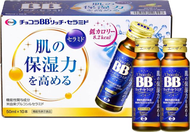 チョコラBBリッチセラミドで乾燥に負けない潤い肌へ。米由来グルコシルセラミド配合の機能性表示食品が全身のバリア機能をサポート。低カロリーで飲みやすいラフランス味。内側から輝く自信を取り戻すための美容ドリンク。