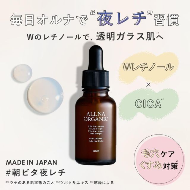 オルナオーガニックセラムはWレチノール配合で毛穴やくすみに挑む美容液の決定版にして乾燥に悩む夜の肌をシカとビタミンCが優しく包み込む日本製無添加処方の至高の逸品でナイトルーティンの質を劇的に変える救世主
