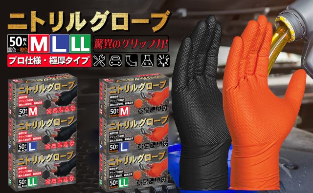 カラーは、汚れが目立ちにくいスタイリッシュな黒と、視認性の高い鮮やかなオレンジの2色展開。Lサイズで100枚入りという大容量も、惜しみなく使える業務・作業用として非常に経済的です。