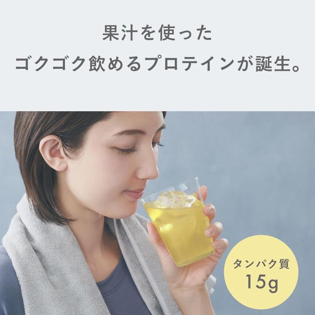 冷蔵庫にストックしておくだけで、いつでもどこでも、キャップを開けるだけでタンパク質15gとビタミンCを美味しくチャージ。粉を計る手間も、シェーカーを洗う手間もありません。