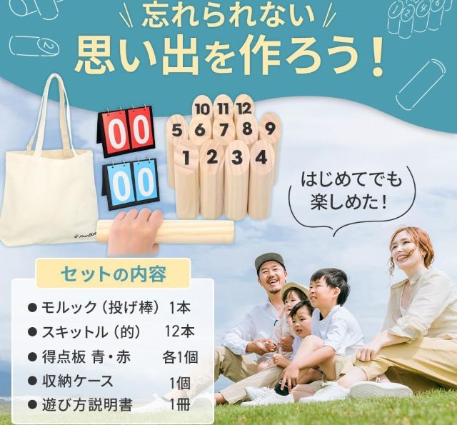 「家族の絆をもっと深めたい」「友人との集まりに、新しい刺激が欲しい」。そんな想いを抱えているすべての人へ。本作のようなモルックセットは、あなたの休日に新しい彩りを添え、数年後も語り合える最高の思い出の種となります。