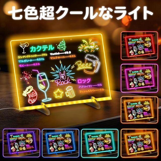 このボードの最大の魅力は、なんといっても7色の光が織りなす圧倒的な演出力です。専用のペンでアクリル板に描いた文字や絵が、LEDのスイッチを入れた瞬間に命を吹き込まれたかのように輝き始めます。従来の紙とクレヨンでは決して味わえない、この「光る」という体験が、子供たちの好奇心を強烈に刺激し、創作への意欲をどこまでも引き出してくれるのです。