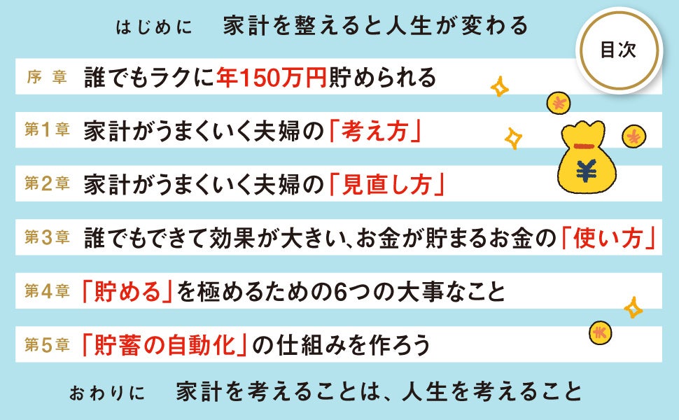 本書に載っている方法を実践することで、夫婦がムリせず楽しく年150万円貯められるようになります。家計改善成功率100%の1級ファイナンシャル・プランニング技能士が教えます。